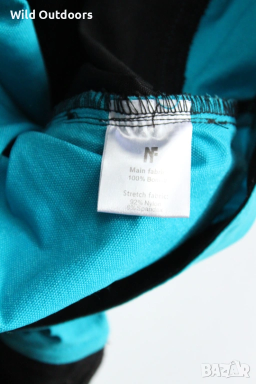 Състав от два вида материя - полиестер и памук - черната и основна; полиамид и еластан - лазурено синята - разтеглива за комфорт и вентилация при движение.