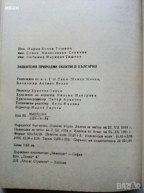 Защитени природни обекти - М.Тошков,С.Милославов,Л.Маринов - 1984г → Обява 53125812