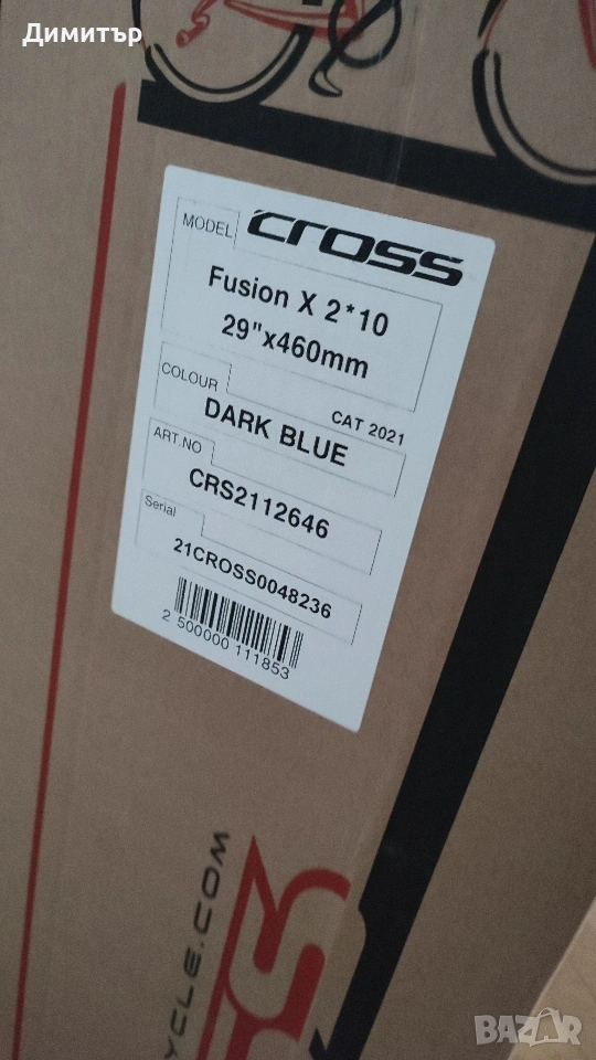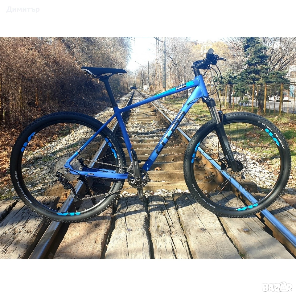 велосипед CROSS FUSION X 29".Размер на рамката М или 460 мм. Оптимална комбинация от комфорт и контрол при каране по неравен терен. Важни предимства на велосипеда са: алуминиевата рамка, вилка от реномиран производител (ROCKSHOX FS JUDY TK 29 100 мм), скоростна трансмисия Shimano 20 (2x10) от клас DEORE, хидравлични дискови спирачки, висок клас гуми – SCHWALBE, изнесени лагери (т.нар. „куха ос”) и надеждни компоненти - Shimano deore. Описание . Рамка 29" FUSION PRO . Вилка ROCKSHOX FS JUDY TK 29, настройка на твърдостта и заключване, ход 100 мм Чашка GW 1SI110 with 1HA301 Курбели Shimano Deore FC-M4100-B2, дължина на рамото 170мм. Ос касета Shimano SM-BB52 Педали MARWI SP-610 алуминиеви, Тегло 374 гр. ,Размер 105 х 81 мм. Верига KMC X10, Тегло 268гр. Обтегач Shimano Deore M4120SGS Дерайльор Shimano Deore M4100 Команди Shimano Deore ASLM5100LB + KSLM4100RC , 20 скорости Венец Shimano Deore M4100 Джанти X11, алуминий, двустенни, за диск, 32 отвора Предна главина Shimano FH-TX505, алуминий, 32 отвора, система за бързо освобождаване (QR) Задна главина Shimano FH-TY505, алуминий, 32 отвора, система за бързо освобождаване (QR) Гуми SCHWALBE RAPID ROB 29x2,25 Кормило Crosser HL MTB-AL-320BT-FOV, алуминиево, размер 31.8 мм и дължина 680 мм. Лапа Crosser HL TDS-C507-8FOV, алуминиева с четири болта, дължина 80мм Ръкохватки VELO VLG-1889D2 Седалка Crosser DDK D2605, тегло 310гр. Колче за седалка PROMAX SP-2016, Алуминий, черно, дължина 350мм. и тегло 298 гр. Скоба за седалка PROMAX MX27 35 MM * BLACK Предна спирачка Хидравлична дискова Shimano Acera M396 / Clarks m2 с ротор 180 mm Задна спирачка Хидравлична дискова Shimano Acera M396 / Clarks m2 с ротор 160 mm Страна на произход България. Подарък чисто нова степенка оригинална на cross и безжичен вело компютър. За Казанлък и Стара Загора е възможно лично предаване. Не изпращам с куриер. Крайна цена. Цената в магазина 766евро или 1500 лв .