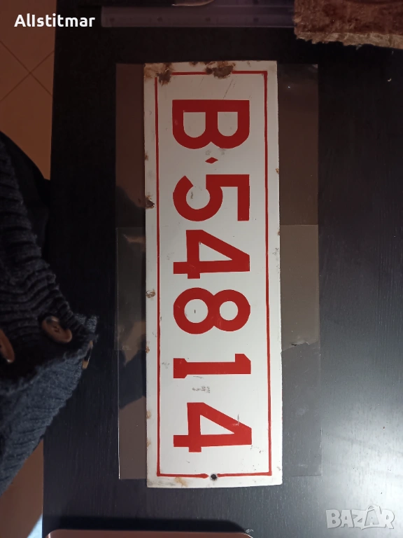 Ретро колекционерска табела, бяла, червени цифри → Обява 53126132