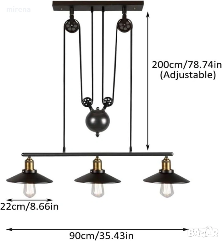 КЛАСИЧЕСКИ полилей с V-образна ролка, регулируем покачване и спускане, ретро осветление, таванно осветление, съвместимо с кухненски остров, маса за трапезария, билярдна маса, за домашен декор