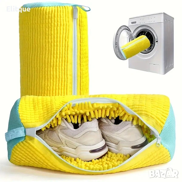 Забрави за накисването и ръчното миене на обувки – просто ги постави в този специален калъф, затвори ципа и ги пусни в пералнята. Вътрешната част от гъсти микрофибърни нишки осигурява нежно, но ефективно почистване, докато външният слой защитава както обувките, така и барабана на машината.