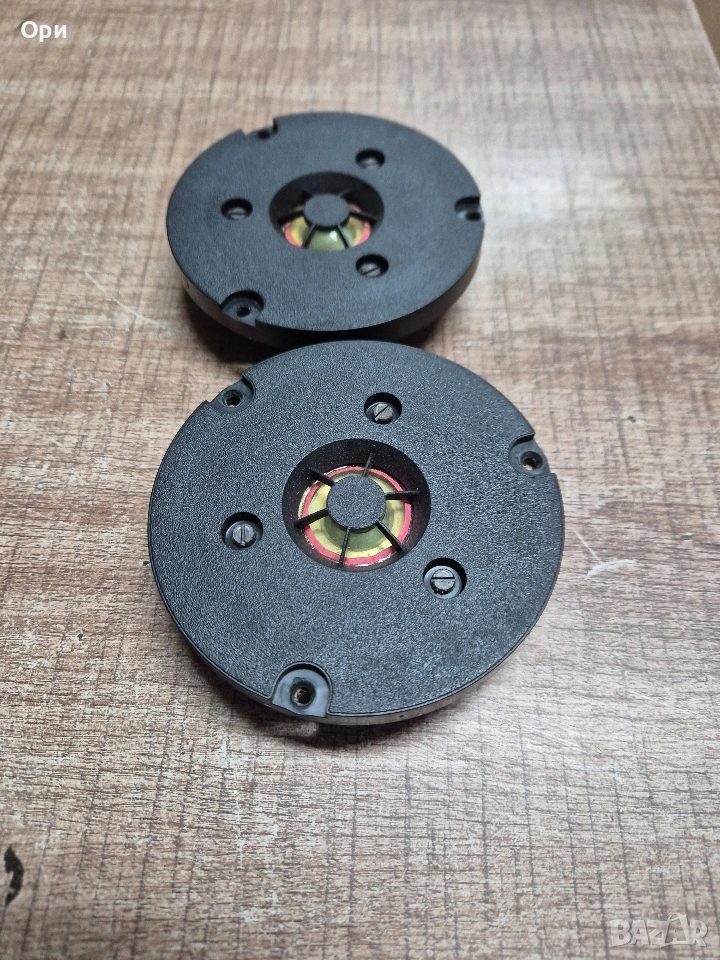 Високочестотни говорители Philips AD0140T8 в перфектно състояние свалени от 100ватови тонколони (виж последната снимка) Импеданс 8ома. Диаметър 95мм.
