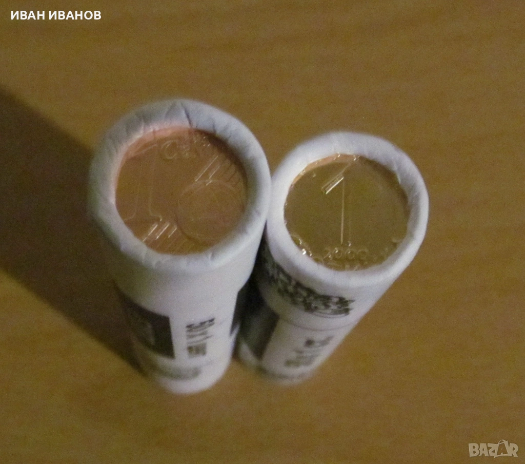 Комплект Банкови фишеци от 50 бр. по 1 стотинка и от 50 бр. по 1 евроцент- UNC → Обява 53126430