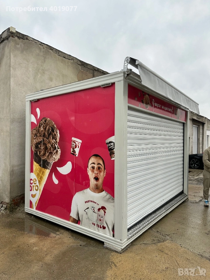 Павилион оборудван за продажба на сладолед готов за работа със електрическа щора брандиран