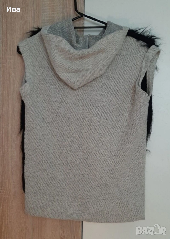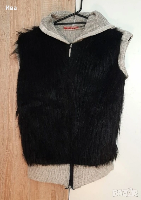 Сив елек с черна козина. Закопчаване с цип. Елечето не е носено много, няма никакви забележки. Подходящо е за момиче. Размер xs