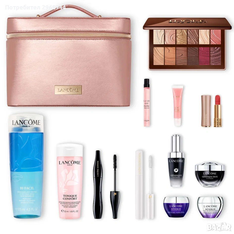 Hypnose Mascara, 4ml Cils Booster XL Juicy Tube, Spring Fling Absolu Rouge Intimatte Tonique Confort, 50ml Renergie Hpn 300 Cream, 15ml Genifique Ultimate Serum, 30ml La Vie Est Belle, 10ml Travel Spray Genifique Eye Cream, 20ml Renergie Night Cream, 15ml Limited Edition Christmas 2025 Palette