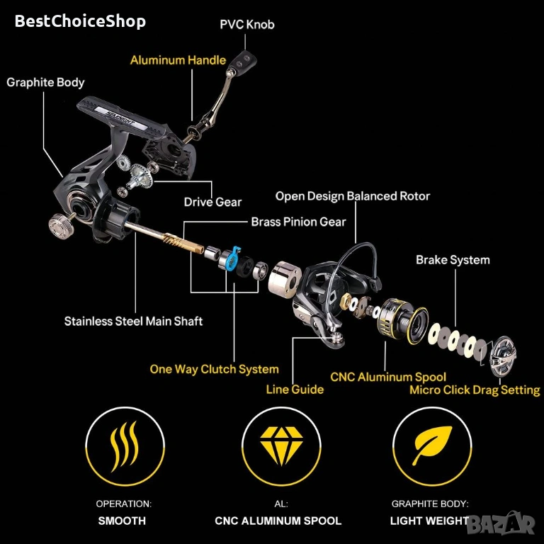 - Кухата алуминиева CNC шпула ви осигурява изключително здрава и лека шпула, а високоякостното графитно тяло прави макарата лека, но здрава.