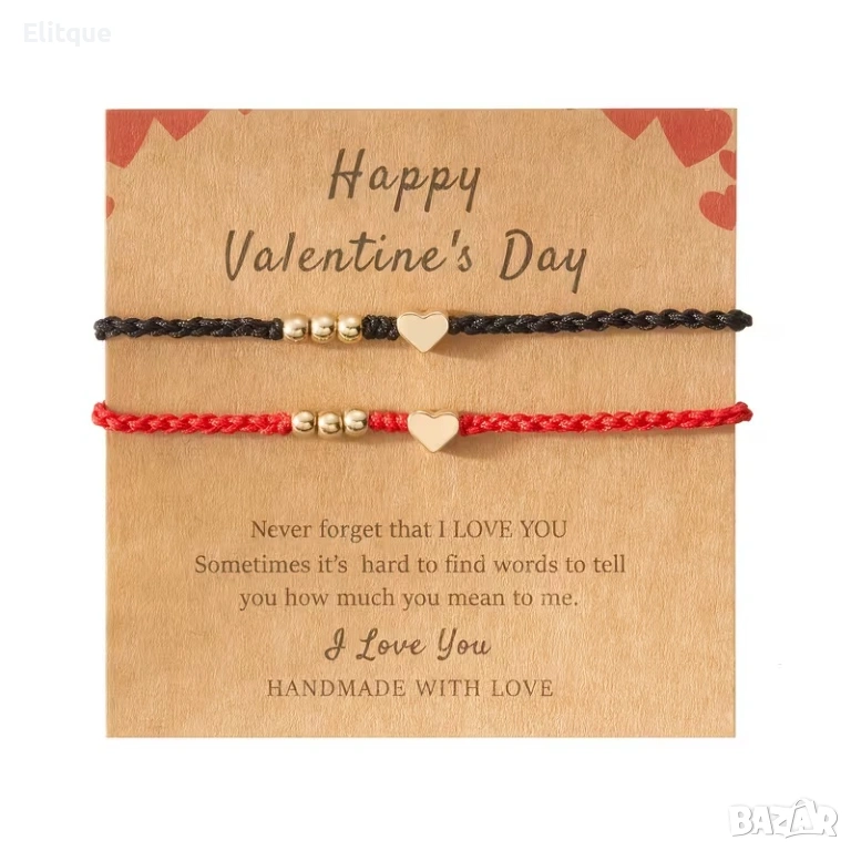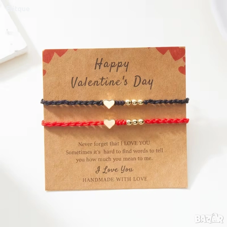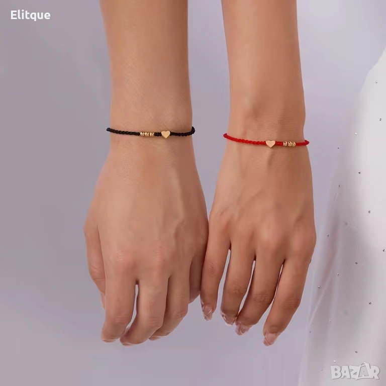 Този нежен комплект гривни е създаден като малък, но силен жест на любов. Две фино изплетени гривни – една в класическо черно и една в страстно червено – са завършени с деликатно сърце и декоративни мъниста. Минималистичният дизайн ги прави подходящи за ежедневно носене, а символиката им напомня за връзката между двама души, независимо от разстоянието. Перфектен подарък за Свети Валентин, годишнина или просто „без повод“, когато искаш да кажеш „Обичам те“.