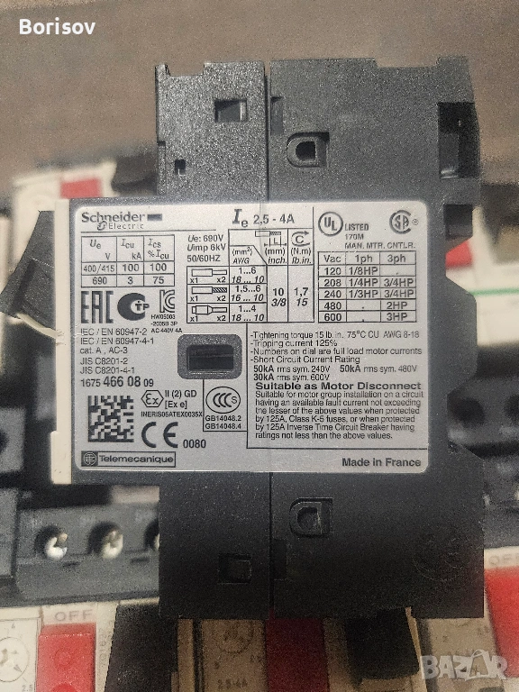 Продавам термомагнитни моторни прекъсвачи  GV2ME08S CHNEIDER ELECTRIC-Изключвател за двигатели., снимка 1 - Резервни части за машини - 53126896 Продавам термомагнитни моторни прекъсвачи  GV2ME08S CHNEIDER ELECTRIC-Изключвател за двигатели., снимка 2 - Резервни части за машини - 53126896 Продавам термомагнитни моторни прекъсвачи  GV2ME08S CHNEIDER ELECTRIC-Изключвател за двигатели., снимка 3 - Резервни части за машини - 53126896 1/3