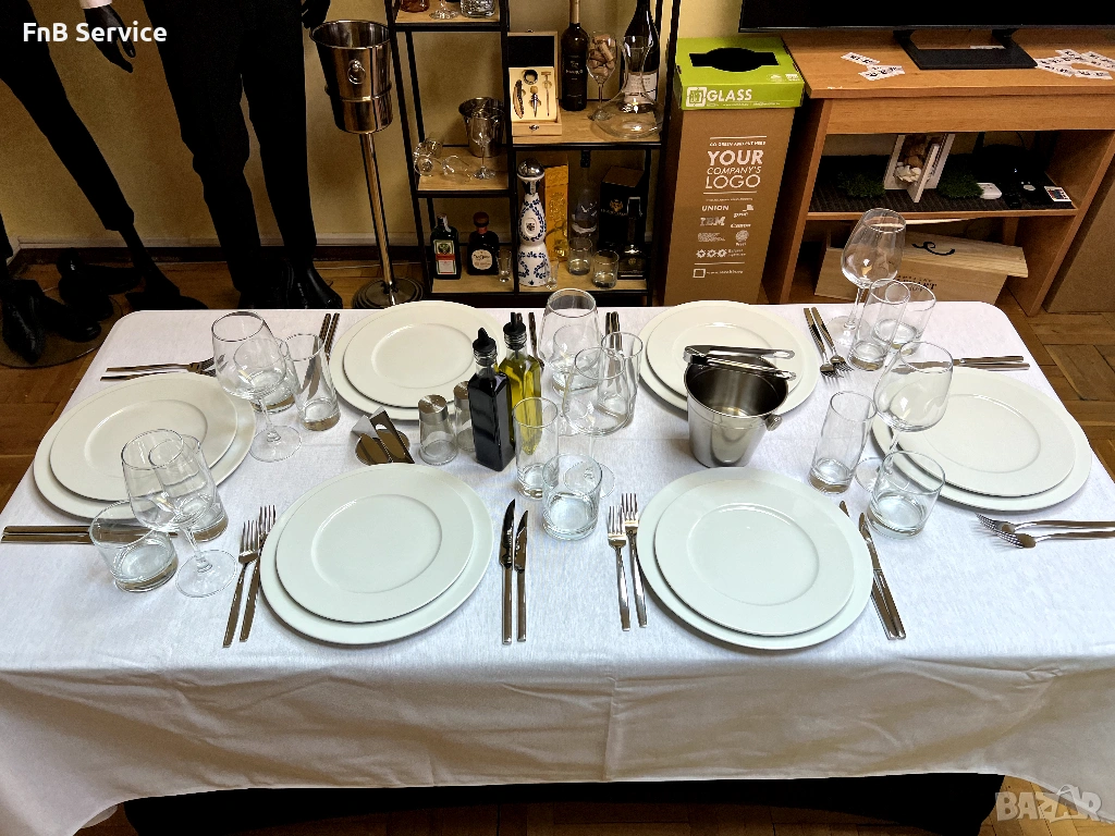 Доставвят се на място или взимане от наш офис, като след събитие не се мият. Нашият екип на FnB Service ги подготвя с специални боксове, измити и полирани.