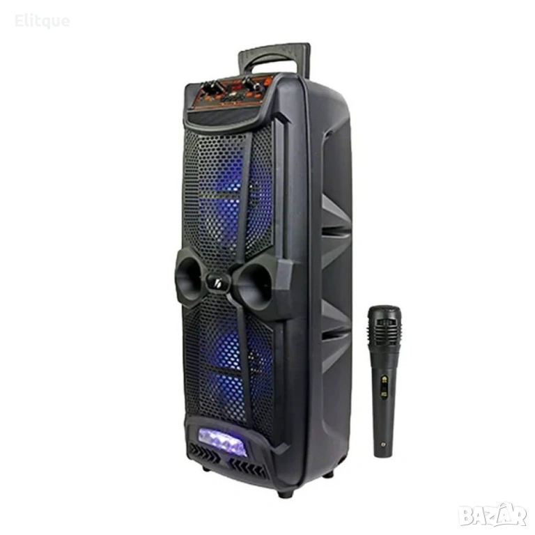 Преносима караоке Bluetooth колонка KTS 1743, 2 х 8” басови високоговорителя, акумулаторна батерия, MP3, SD/USB, жичен микрофон, LED светлинни ефекти