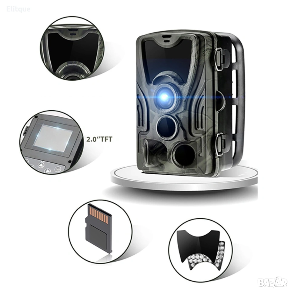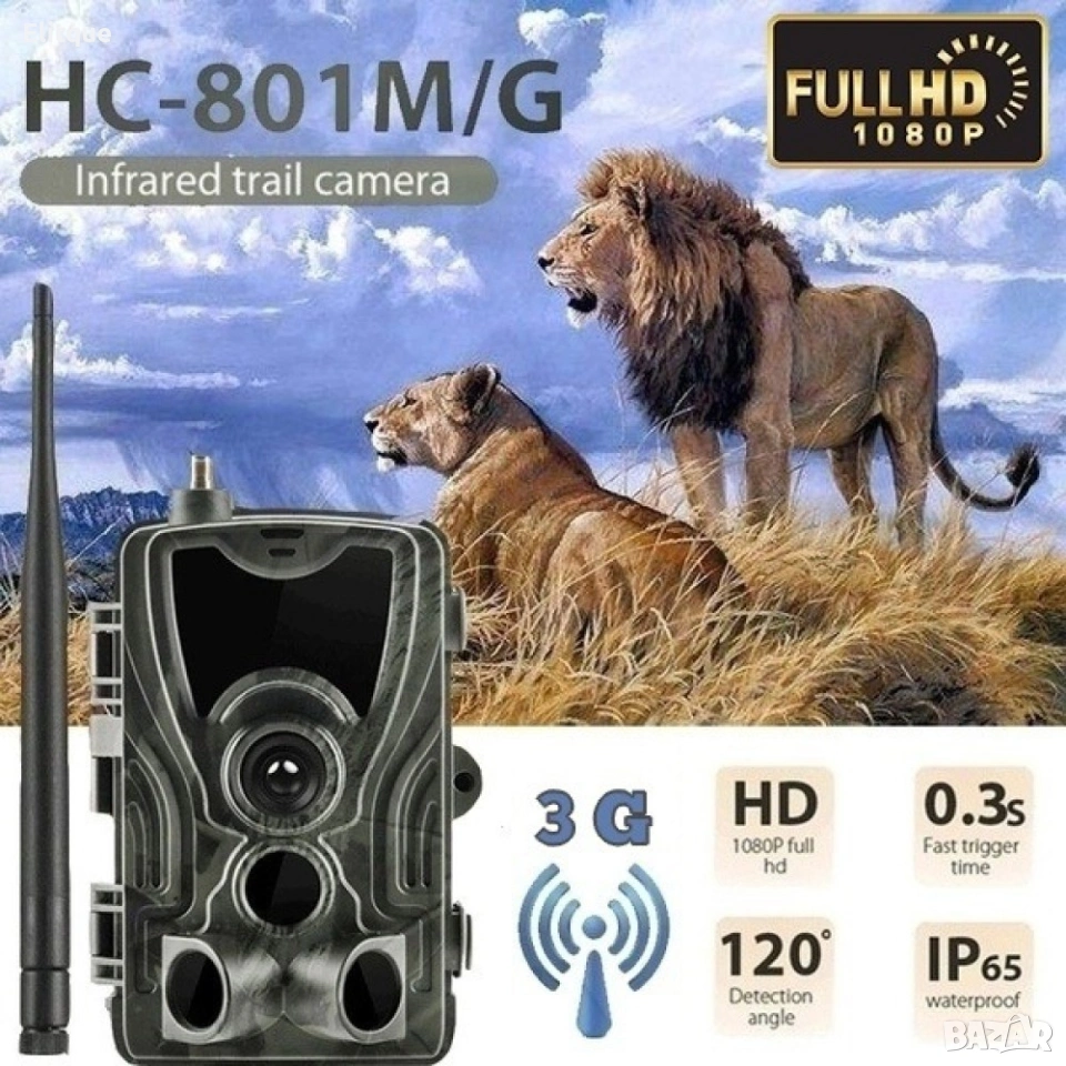 Записва видео,снима и изпраща MMS и EMAIL. Водоустойчивата ловна Full HD камера HC-801M/G е идеалния вариант за охрана на имотите Ви или следене на ловния периметър. Подходяща е и за пчелини,овощни градини,следене на популацията на различни животни. Разполага с PIR сензор, който улавя движението пред обектива. Можете да зададете на устройство да снима само в определени часове, като през останалото време ще бъде неактивно. Кадрите ще бъдат с високо качество независимо дали снимате през деня или през нощта. Снимките и клиповете може да получите по два начина, като и за двата Ви трябва СИМ карта с активиран интернет. Първият е чрез MMS, за което трябва да активирате и MMS услуга от мобилния оператор. Вторият вариант е по-бюджетен и именно за това и по-предпочитан, можете да получавате кадрите по имейл. При този избор Ви трябва карта само с интернет. Устройството може да бъде нагласено да прави снимки, видео или и двете като ги редува. Има Time Lapse функция, която позволява да настроите интервали за правене на снимки съответно през 5, 30 или 60 мин. Всички кадри се съхраняват на SD карта с памет, която може да бъде с големина до 32 GB. Не на последно място е корпусът, който е водоустойчив, така няма да се притеснявате, че камерата може да се повреди при дъжд и влага. Също така е в камуфлажен цвят, който се слива много добре с природата.