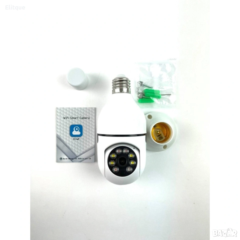 Куполна камера тип крушка с ъгъл на видимост 360° и вграден микрофон. Може да се използва за скрито видеонаблюдение, наблюдение на персонала, контрол на клиентите в търговски обекти, контрол на качеството на обслужване. Камерата може да се завърти на 355 градуса хоризонтално и да се завърти на 90 градуса вертикално. Работи в дневен и нощен режим. Aвтоматично включване в нощен режим или ръчно чрез мобилното приложение: YI IoT, което е налично за iPhone и Android. Изключително лесен монтаж. Вграден микрофон с висока чувствителност и говорител за двупосочна аудио връзка.