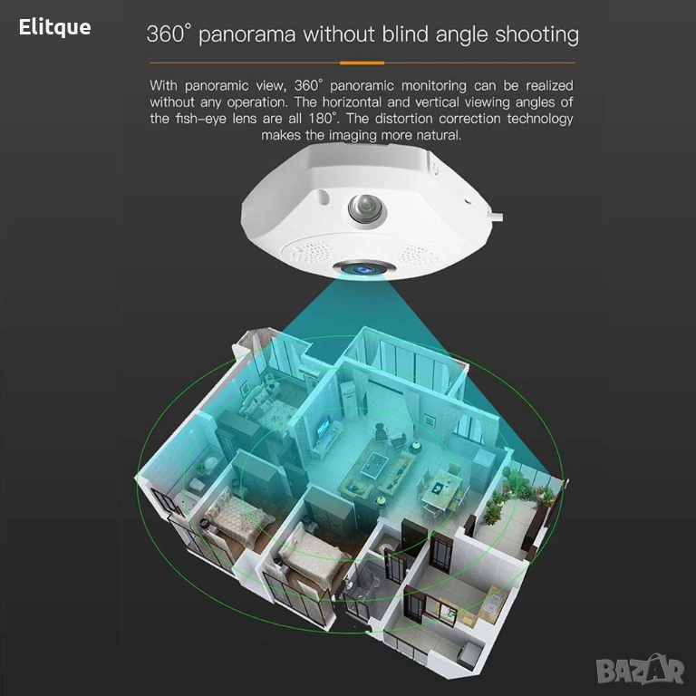 Може да се съвместява със смартфона ви, за да преглеждате през него на живо дома си (съвместими телефони Android, iPhone и други). Гледката от камерата е панорамна на 360 градуса, пространството, което заема от хард диска ви е минимално и поддържа няколко души, като опция за преглеждане на изображенията и видеата. Камерата е съвместима с карта памет Micro SD с максимален капацитет от 32G (не се включва в комплекта). Характеристиките на интерфейса са RJ45 10M/100M.