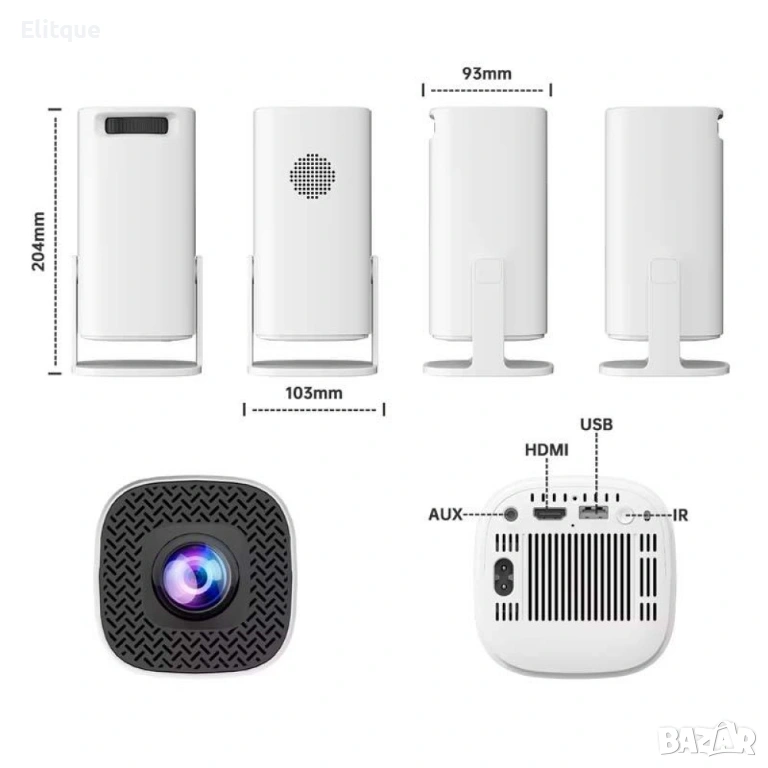Нашият HD видео проектор е съвместим с различни устройства, включително Android/Iphone, таблет/iPad, лаптоп, Macbook, PC, PS4, PS5 и др.