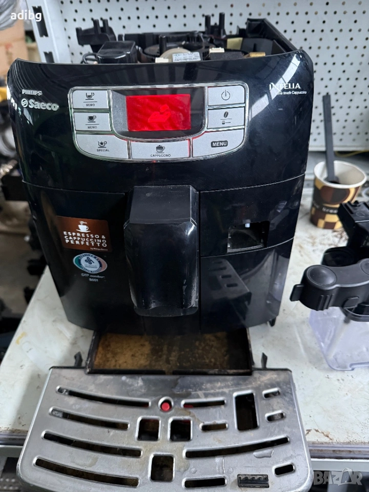 Перфектно работеща кафемашина Saeco İntelia one touch Cappuccino HD8753 с Кана за мляко Продават се на части: