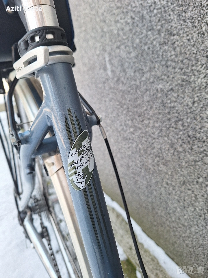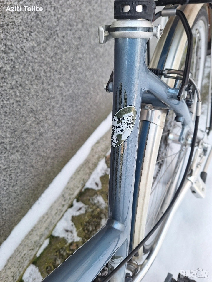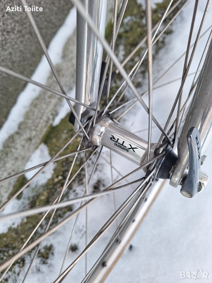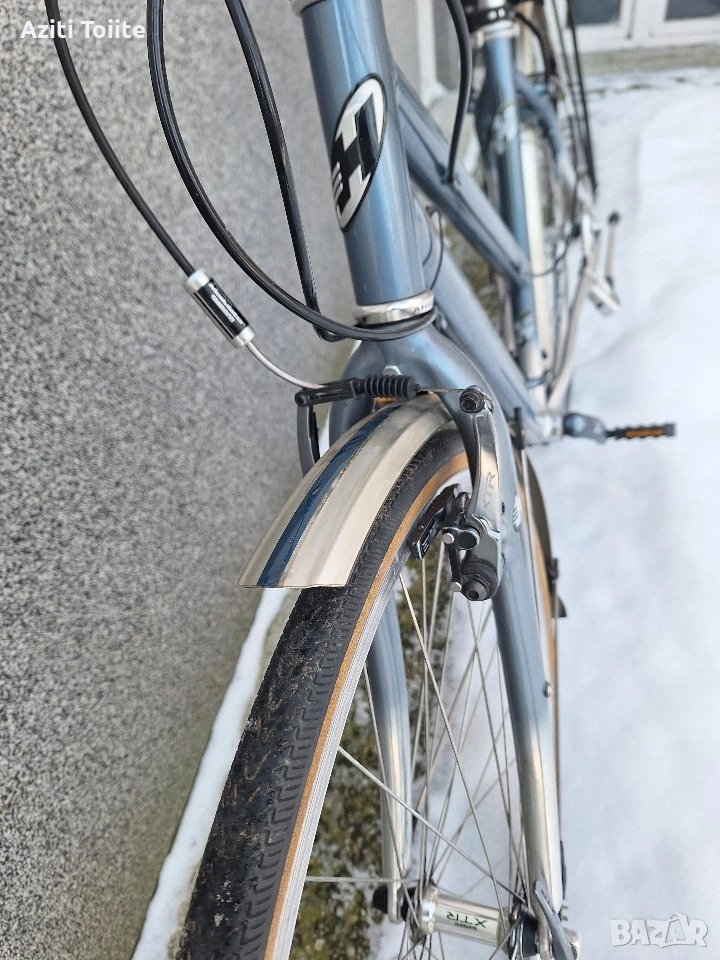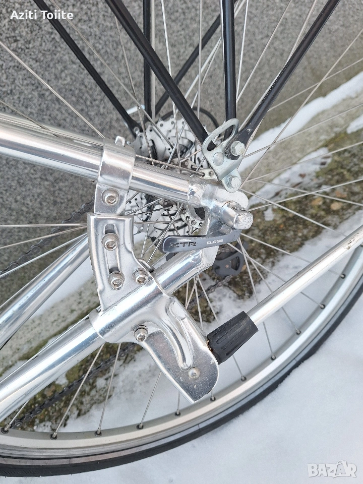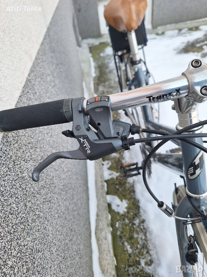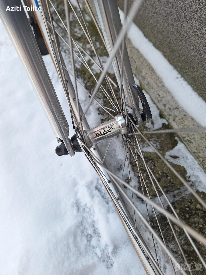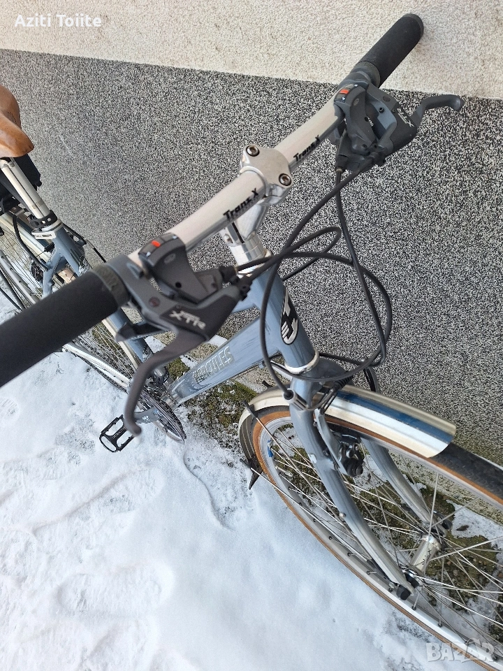 Перфектният градски велосипед,а също така и за дълги преходи.Оборудван с монтаж XTR 950 с изключение на курбелите,които са. deore LX octaling i holotech.Каплите са rigida с главини и автомани XTR.Рамката е hand made-.ъчна изработка и отгоре с оксидация в цвят.Перфектно техническо и козм.състояние като нов.Оборудван с кожена седалка -selle royal contour,алуминиев багажник,калници sks и чанта за инструменти abus.