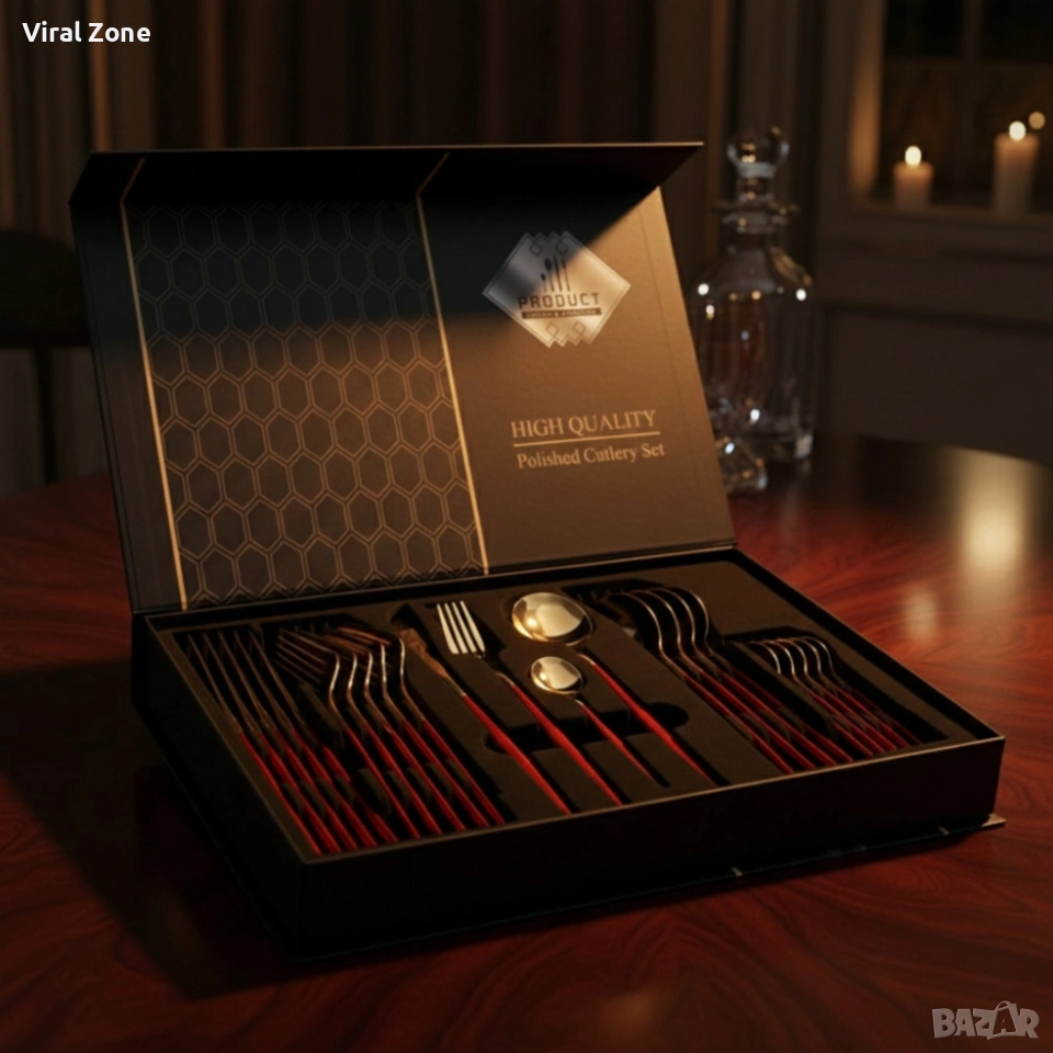 Комплект прибори за хранене от 24 части с луксозен дизайн и магнитна кутия