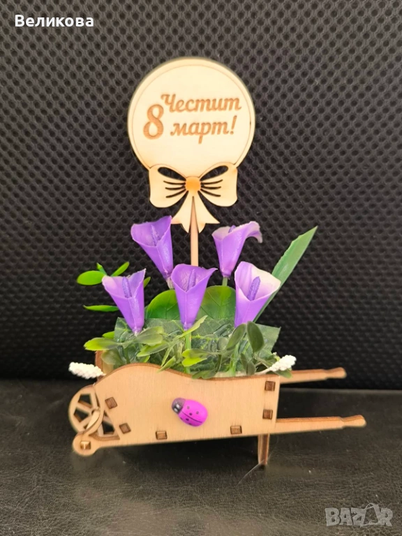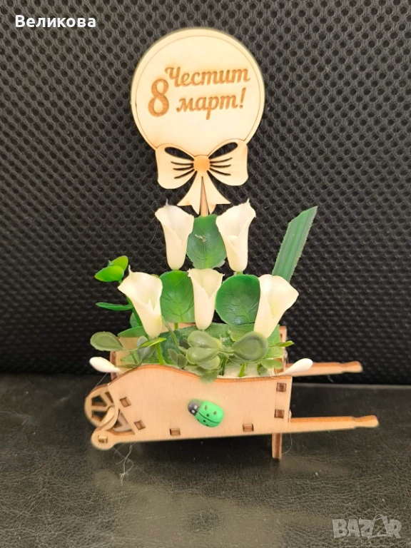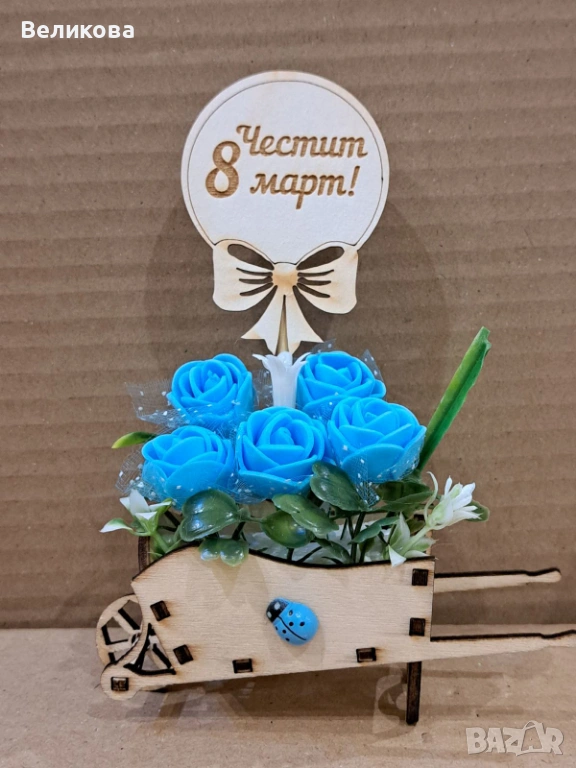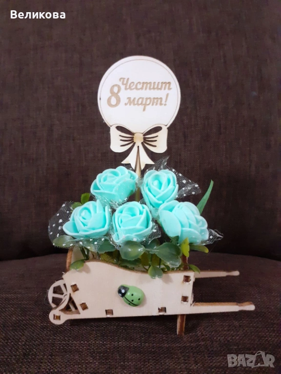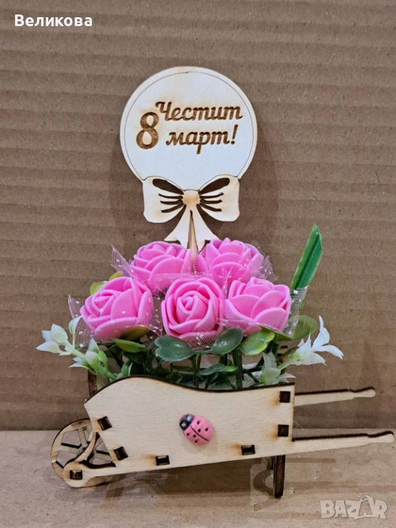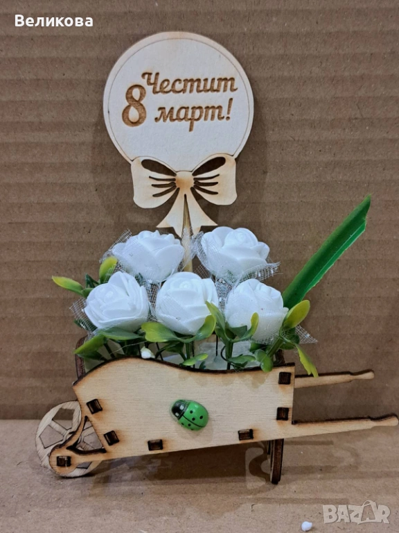 Дървени каручки с розички за 8-ми Март, 12 см., 3 евро.