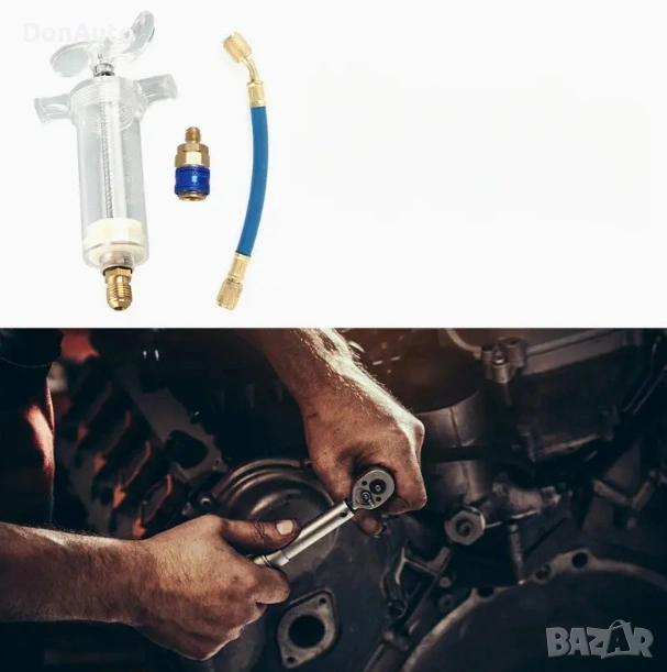 Лесно и точно дозирайте масло и багрило за автомобилния климатик с този прецизен инжектор (със спринцовка 30ml). Проектиран за безпроблемни ремонти и поддръжка на A/C системи, той осигурява бързо и удобно свързване чрез включения бърз куплунг, както и надеждно включване на маркуча и конекторите.
