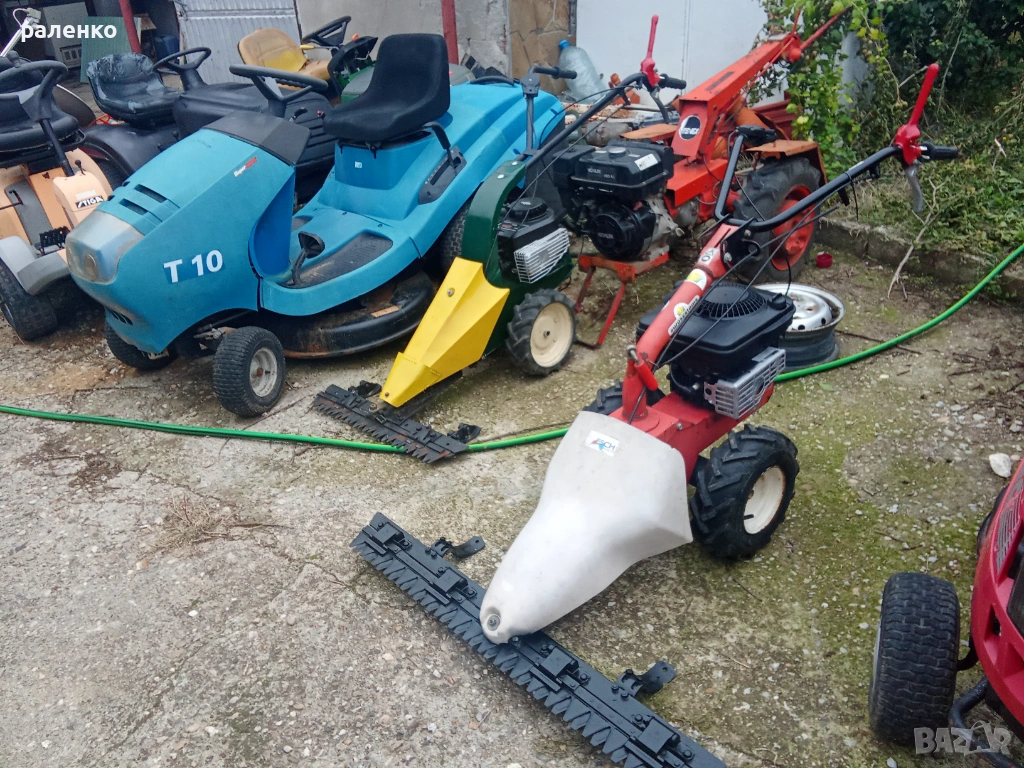 отлични тракторни косачки с двигатели бригс от 490 до 1600е; всякакви части за косачки-нови и втора употреба; тракторчета без косилни апарати от 350 до 450е;палцови косачки готовиза работа; самоходни паркови косачки в топ състояние от 100 до 160е