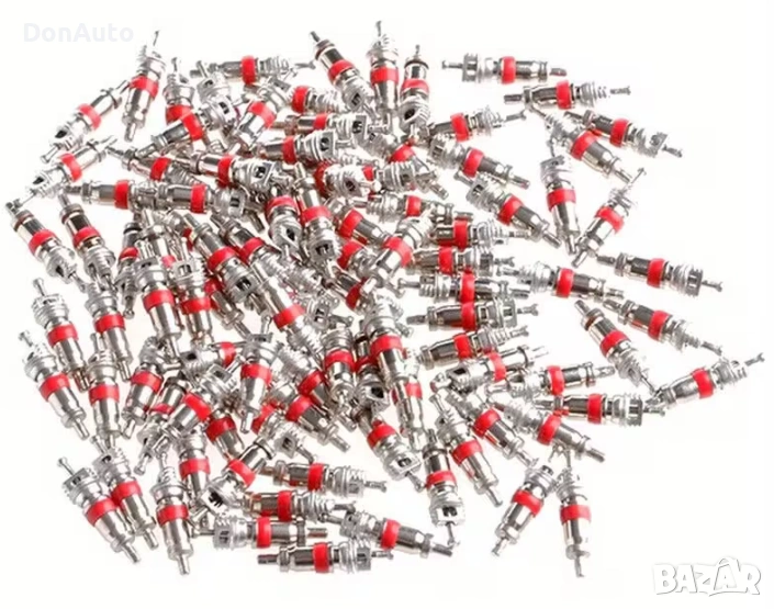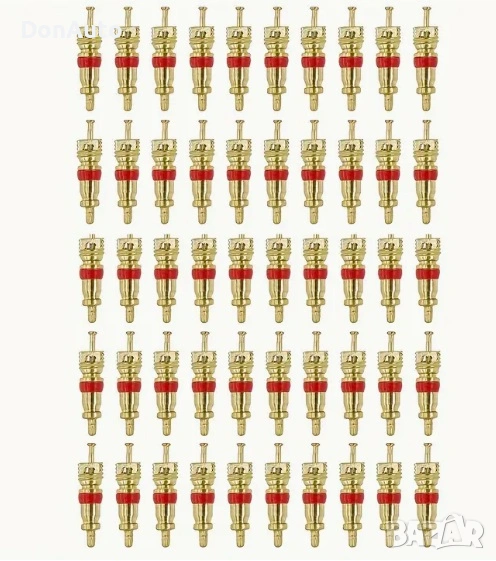 50 бр. игли за вентил за гуми – цинкова сплав с червени гумени уплътнения, устойчиви на корозия