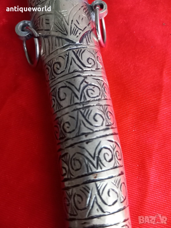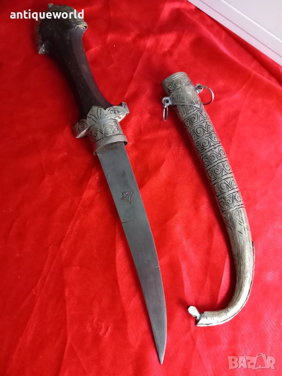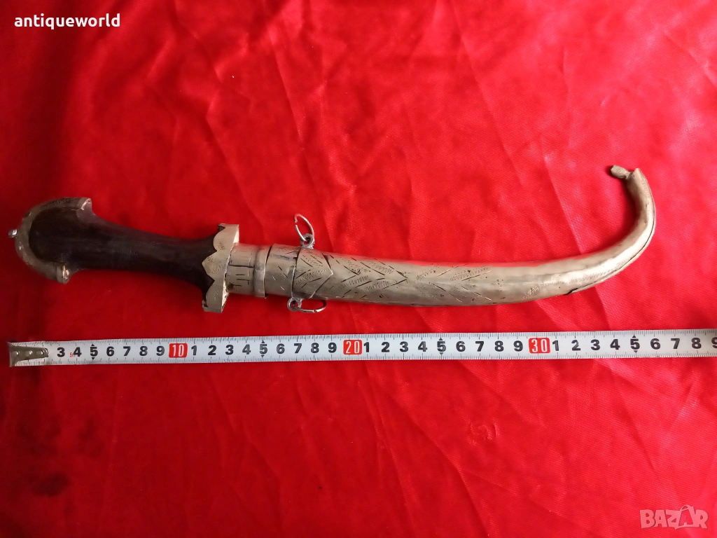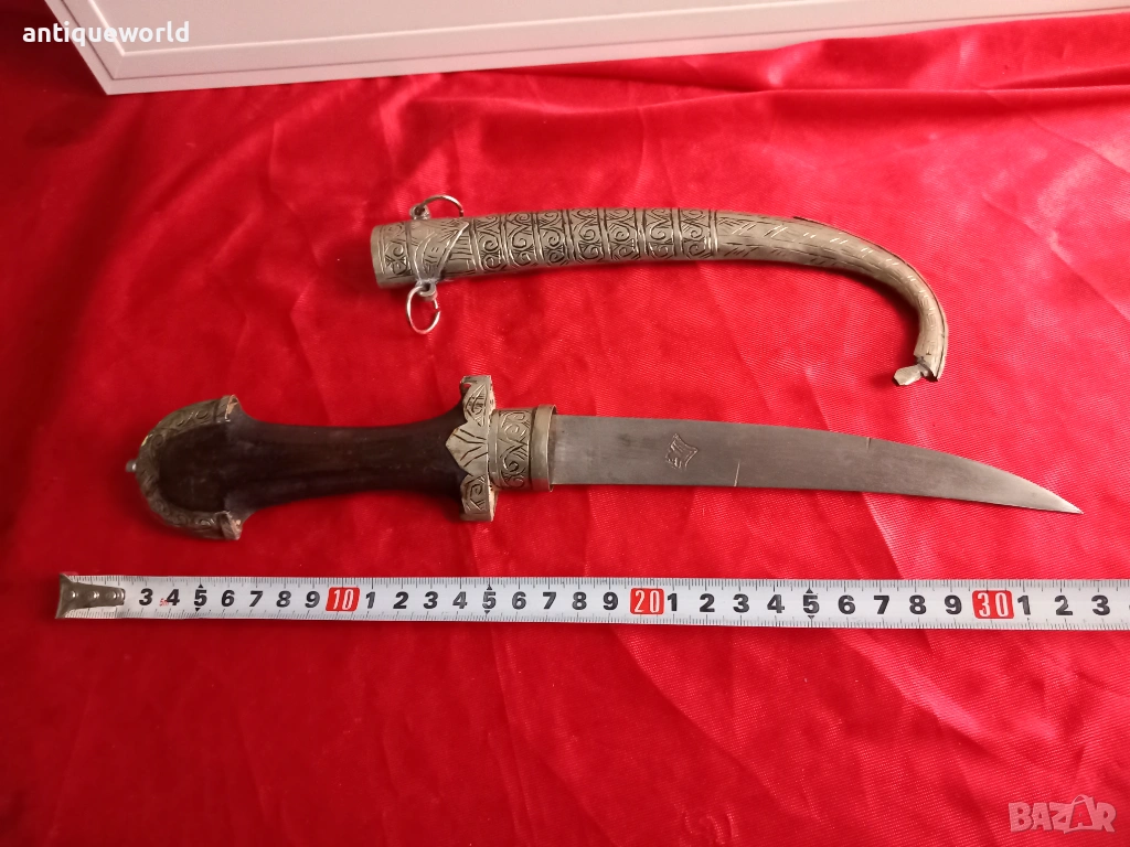 Много Красив Орнаментиран Стар Сребърен/Сачан/ Ханджар, Кумая ,Кама .Налична Маркировка на Острието от Майстора.Незаточен.