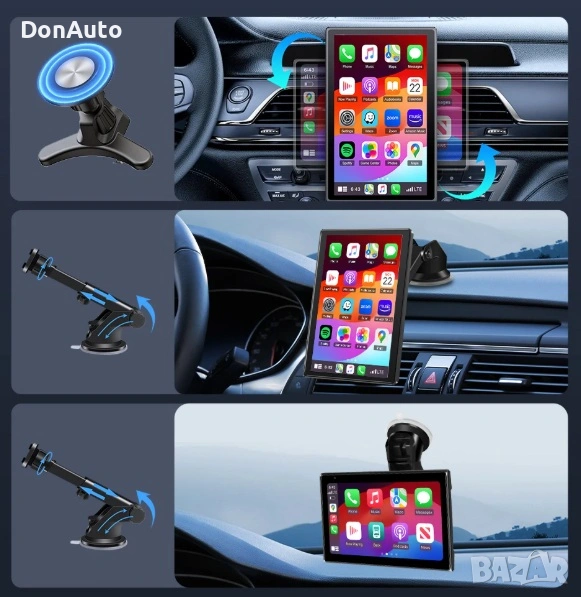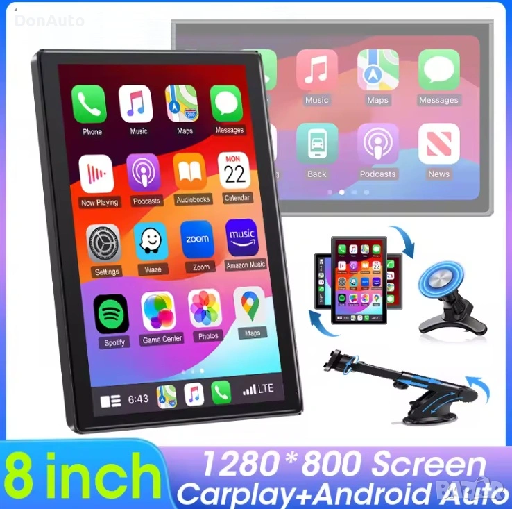Универсална 8-инчова мултимедия Android с въртящ се екран – безжичен CarPlay, Android Auto, WiFi Mirror Link, тъч скриин