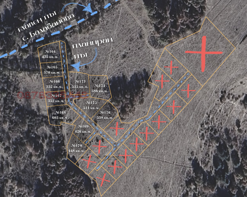 ❗Предлагат се само парцели 164 (475 кв.м.), 165 (370 кв.м.) и 166 (352 кв.м.). При интерес е възможно договаряне и за други парцели!