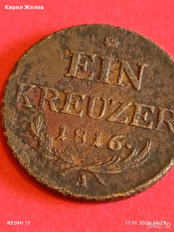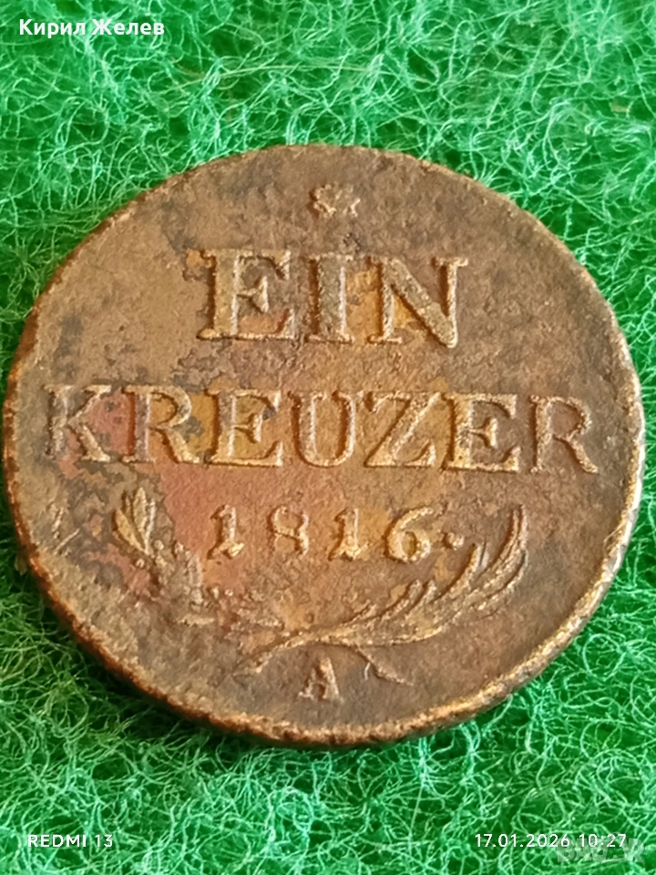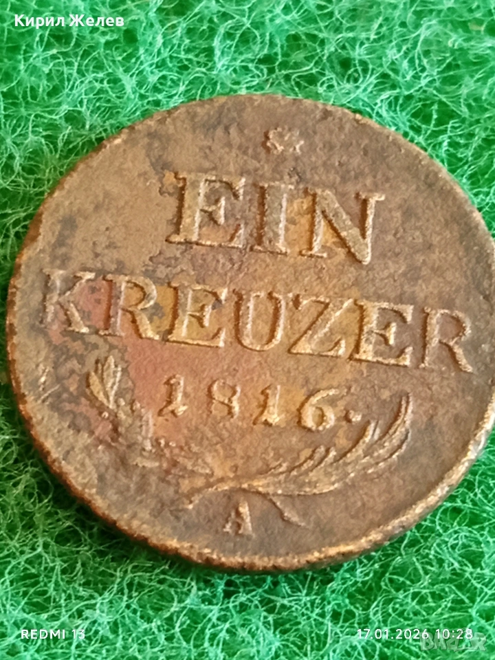 Рядка монета 1 кройцер 1816г. Австрийска Империя за КОЛЕКЦИОНЕРИ 53080 → Обява 53129197