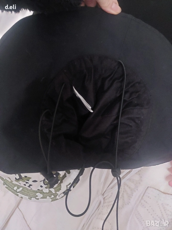 Черната е мъжка с две регулации., под брадата и за обиколката. С велкрю може да се прегъва външно(тип каубойска)