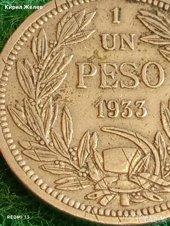 Монета 1 песо 1933г. Чили рядка за КОЛЕКЦИЯ 53151 → Обява 53129251