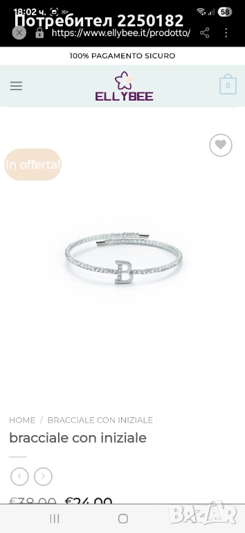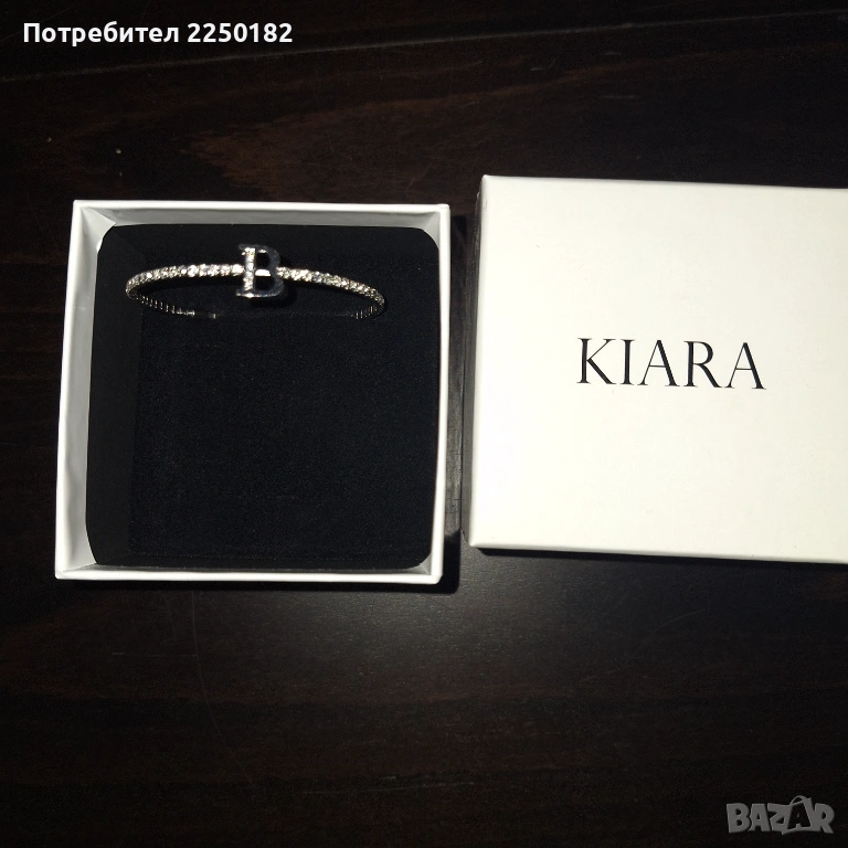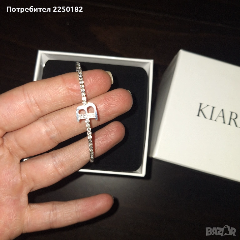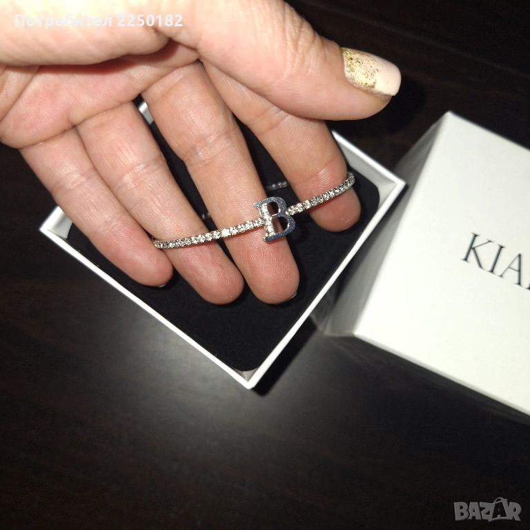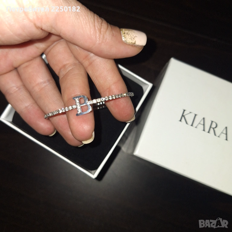 Продавам нова гривна Kiara. Стилна и елегантна декорация за ръката. Гривната е еластична с буквата В. Нова в кутия.