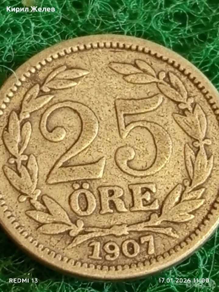 Стара монета 25 йоре 1907г. Швеция за КОЛЕКЦИОНЕРИ 53052 → Обява 53129553