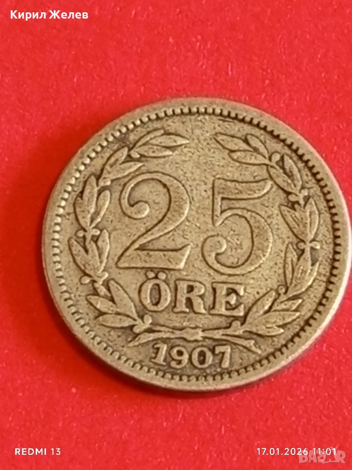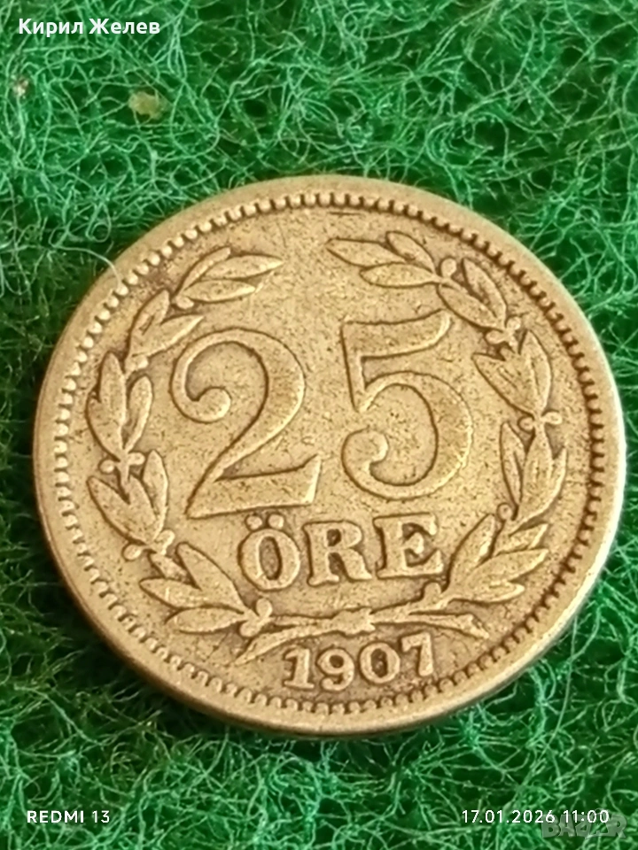 Стара монета 25 йоре 1907г. Швеция за КОЛЕКЦИОНЕРИ 53052