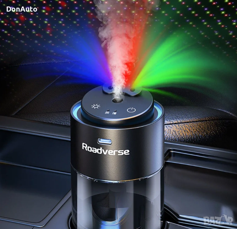 Смарт ароматизатор за кола – 150 ml, етерични масла, USB, LED звездно небе