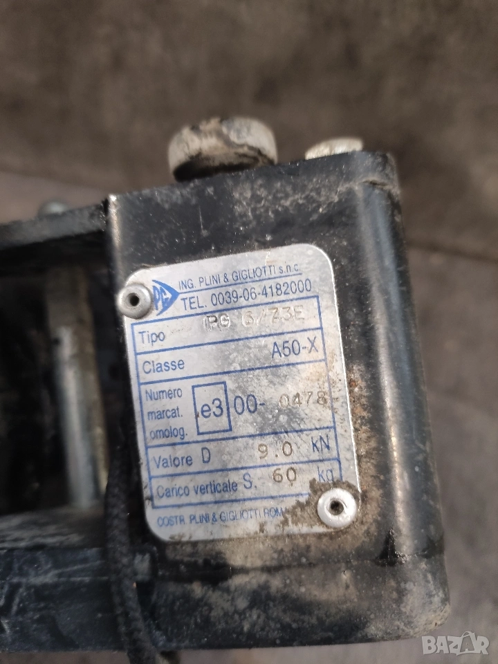 Продавам оригинален италиански теглич Plini & Gigliotti, модел PG 6/23E. Сваляем механизъм с вградена стойка за букса.