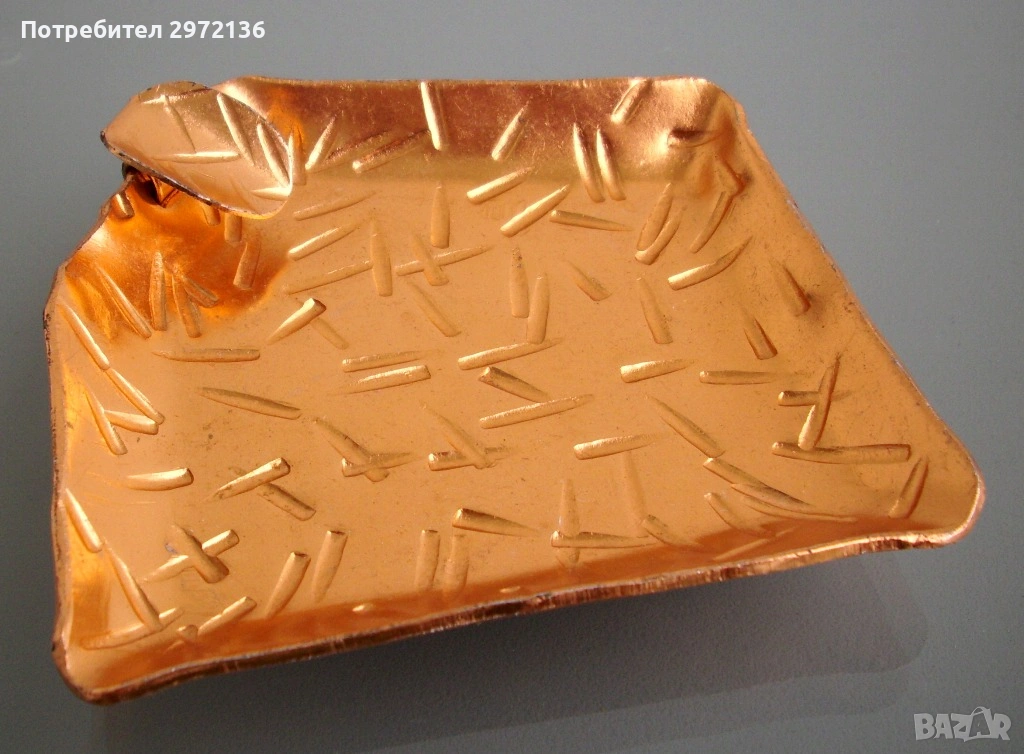 Снимки 7-9: Пепелник от алитиран алуминий, с неправилна форма, диагонал 12 см, височина 2 см, цена 8 €;