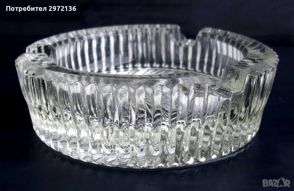 Снимки 4-6: Тежък пепелник от дебелостенно прозрачно лято стъкло, диаметър 10,5 см, височина 3 см, тегло 350 грама, цена 13 €;