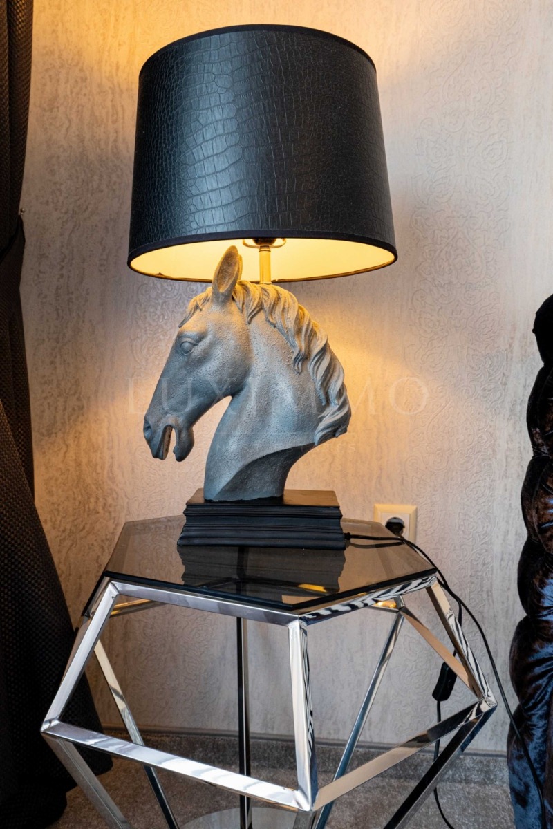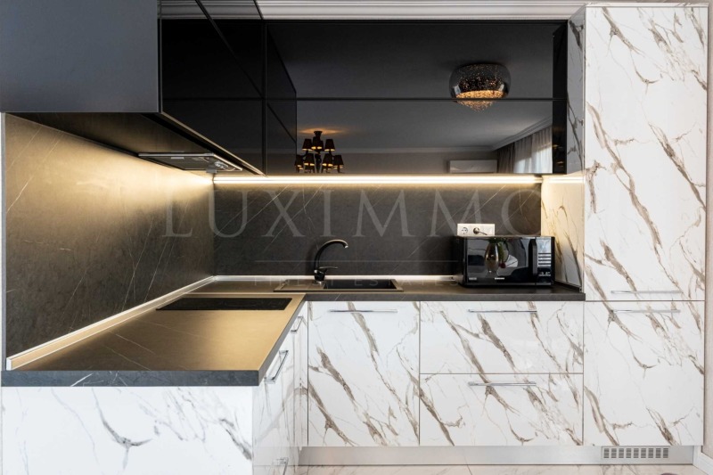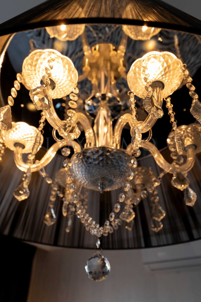Жилището е луксозно обзаведено и мебелирано с всичко необходимо за комфортен живот. Има възможност за преустройство в тристаен апартамент.