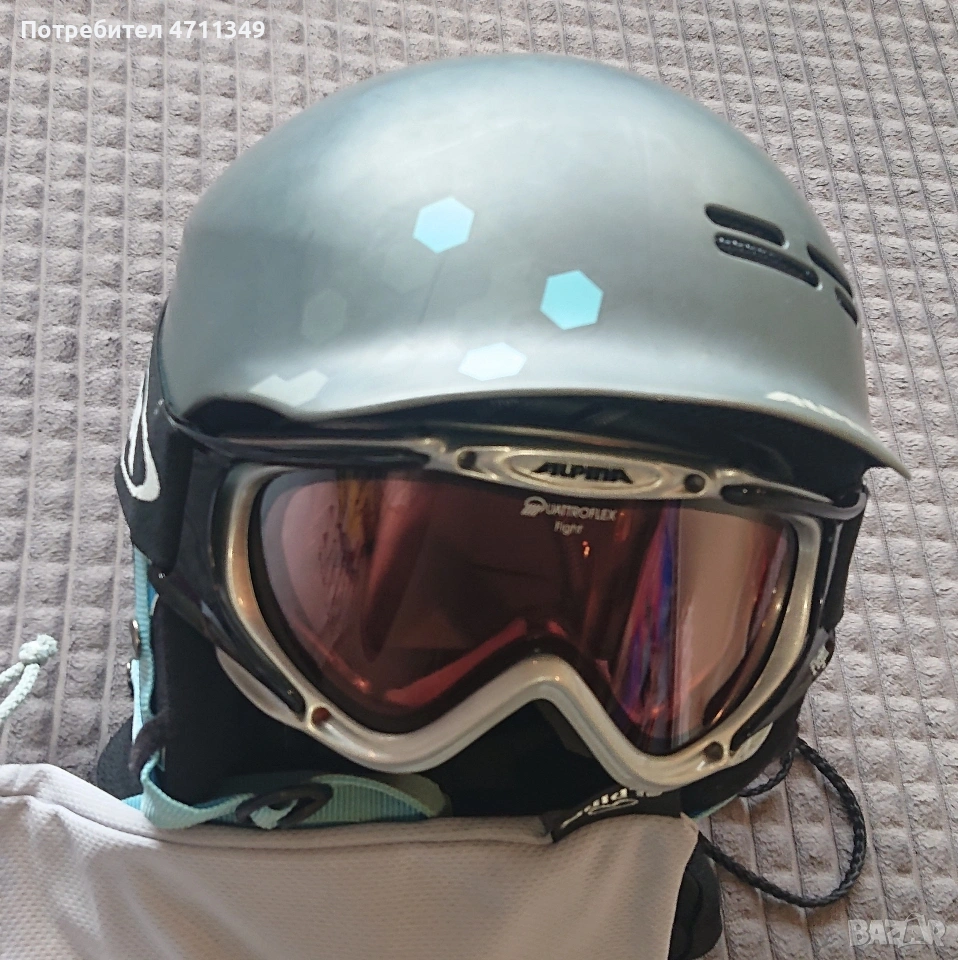 Каска Alpina размер 54-57 очилата Alpina бонус към каската. Нормални следи от употреба. Всичко е здраво.
