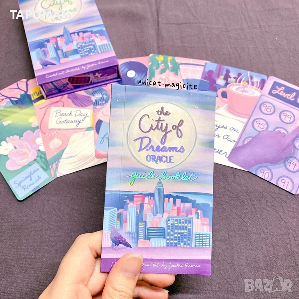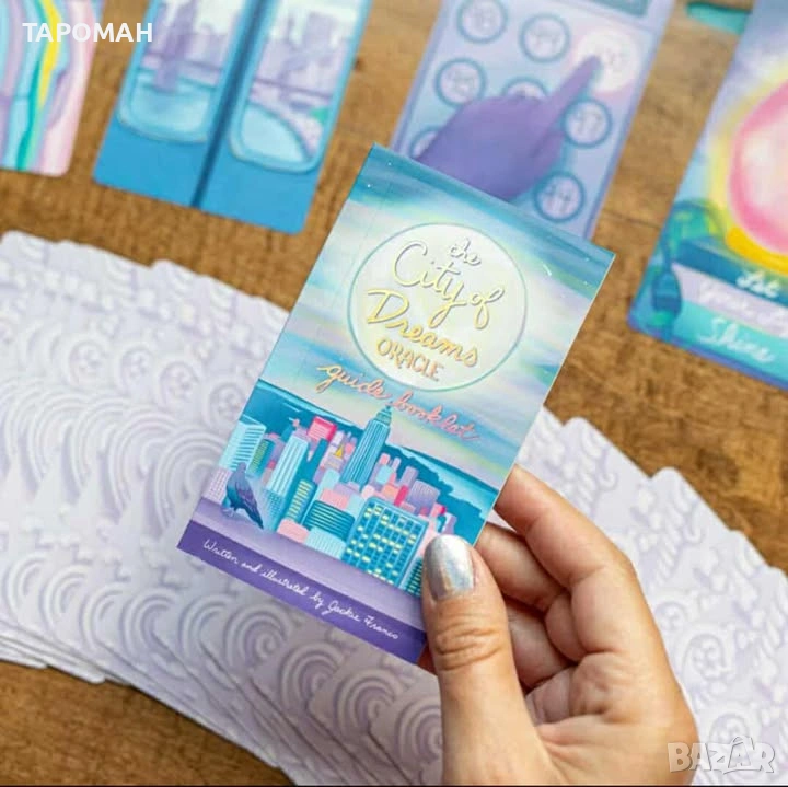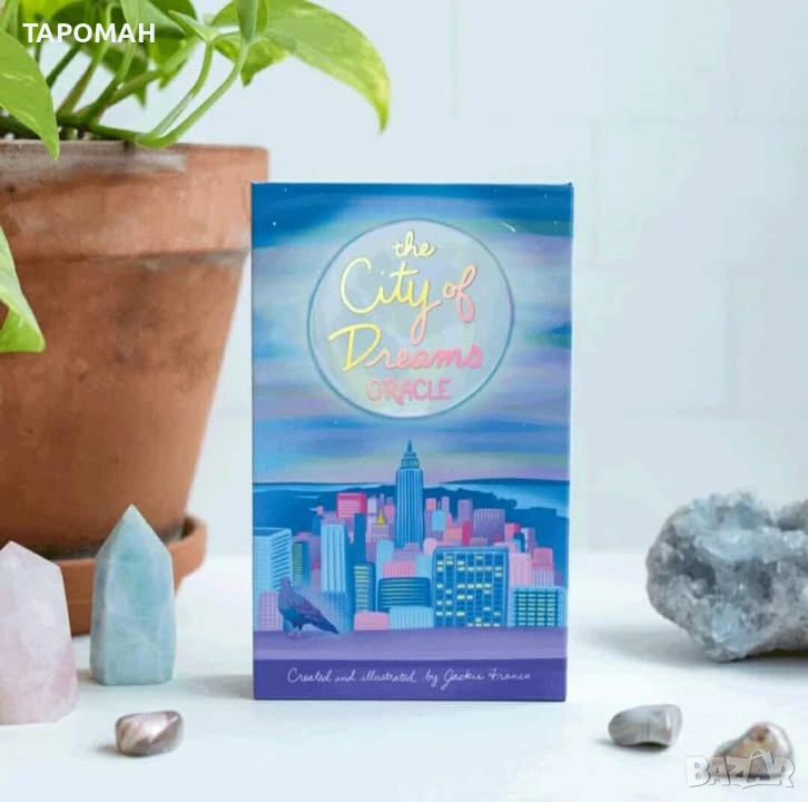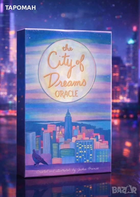 Колодата „Оракулът на града на мечтите“ е мила и подкрепяща колекция от ръчно рисувани, нежни сцени от Ню Йорк. Тази колода е любящо насърчение и подкрепа за тези, които мечтаят за големи, нови начала и разпознават безкрайни възможности. Колодата „Оракулът на града на мечтите“ е послание от ангели и водачи – следвайте сърцето си, слушайте интуицията си и се вслушвайте в ежедневните метафори на градския живот.