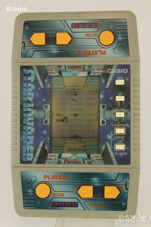 Много рядка детска електронна конзола CASIO Space Invader. Произведена в Япония 1986 годиниа. Играта е за 2-ма играчи. Много добър външен вид. Играта работи, всички бутони функционират, звукът работи. Единствената забележка е избледняване на дисплея където показва точките.