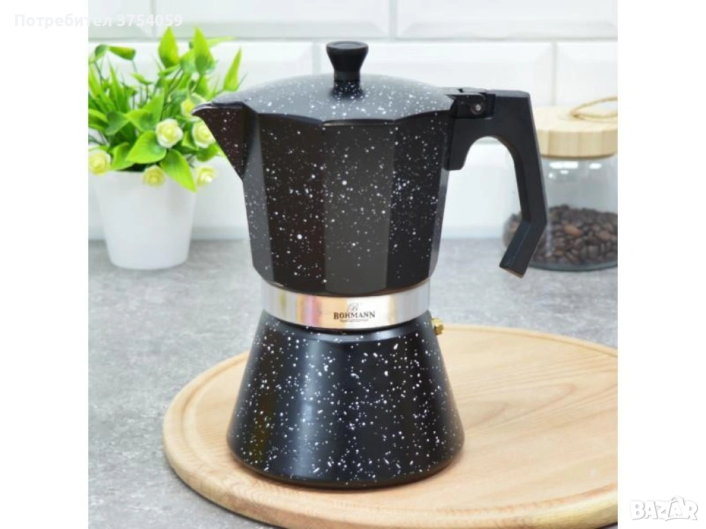 Кубинска кафеварка Bohmann, Алуминий, Черен меланж