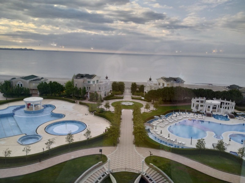 Милениум Имоти представя апартамент находящ се в централната сграда Сигма в 5* хотел Sunset Resort,гр.Поморие. Апартамента е с тераса със страничен изглед море към Бургаския залив. Комплекса е на първа линия с голяма градина, басеини и страхотен плаж пред него. Апартамента е с една спалня, дневна, кухненски бокс, баня с тоалетна и тераса. Сградата е с централна климатизация и топла вода. Южния плаж на Поморие е един от най хубавите по нашето Черноморие, широка плажна ивица, рядко има вълни. В комплекса има 4 открити и един закрит басейн, алей за разходка и места за почивка.