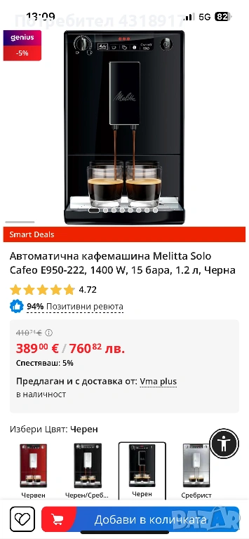 Автоматична кафемашина Melitta Solo Cafeo E950-222, 1400 W, 15 бара