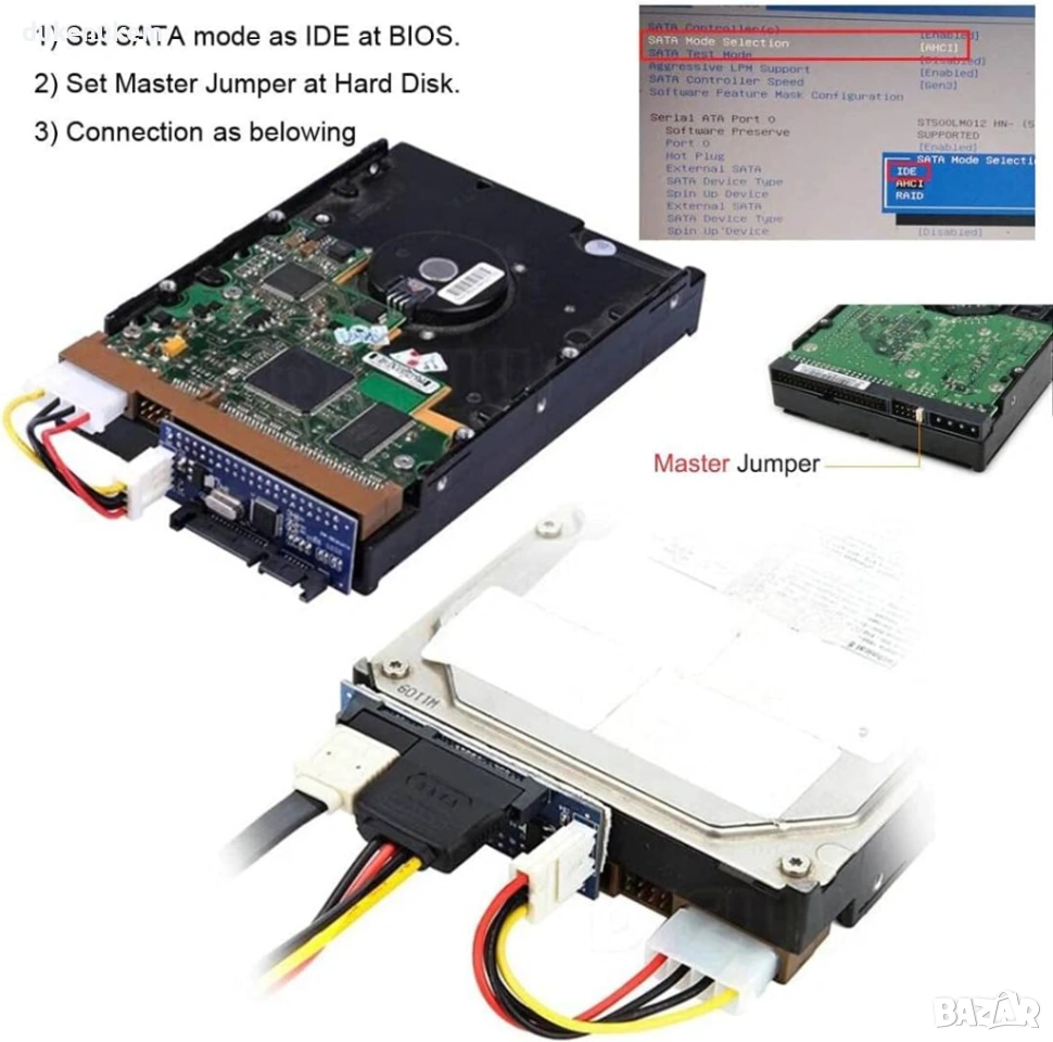 IDE/PATA 40-пинов към SATA адаптер за 3.5" твърди дискове и SSD