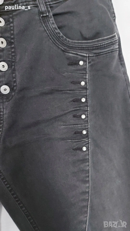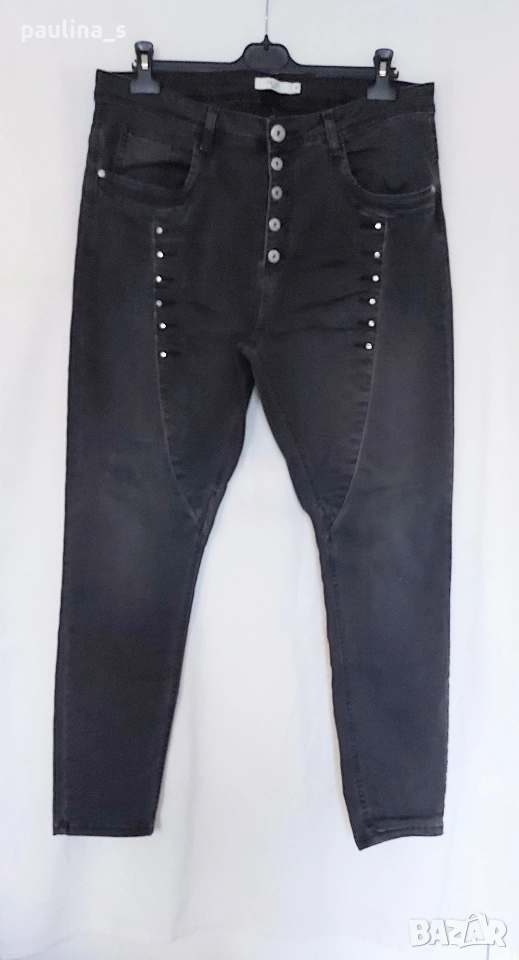 потури. Цената е крайна, без пазарлъци 25 евро. Изумително красиви дънки - потури с крачоли на ездачески брич, декорации от камъни, външни копчета и маркирани тегели. Платът е еластичен и плътен, покрива няколко размера. Има лек избелващ ефект. Нямат дефекти, като нови, само ефекти!