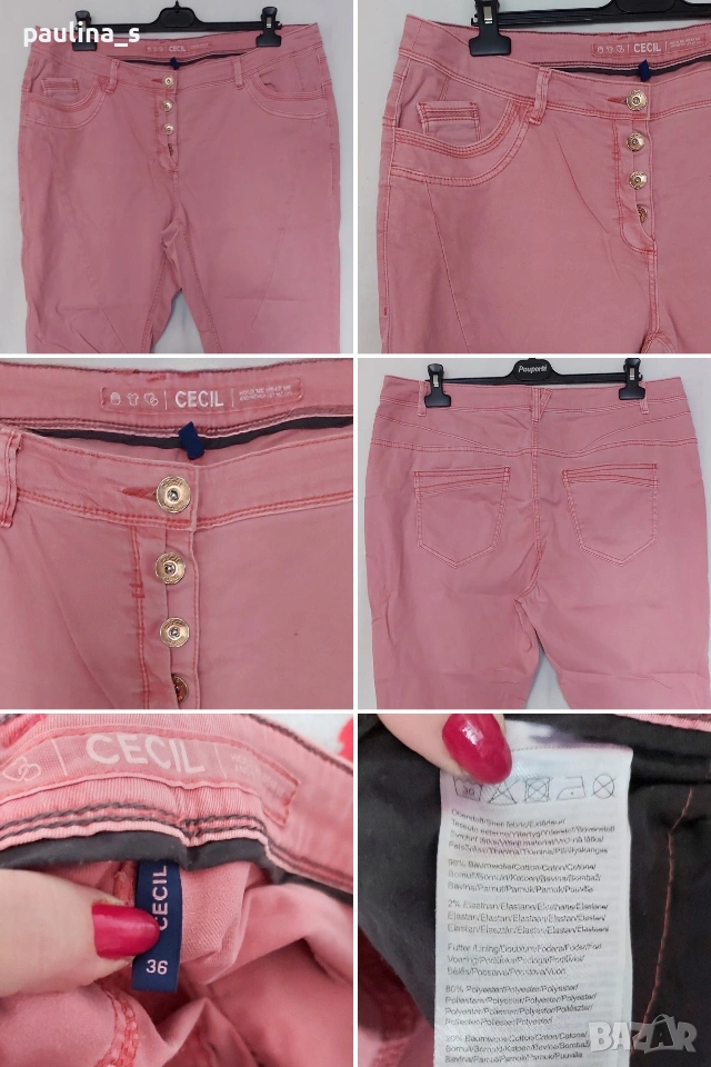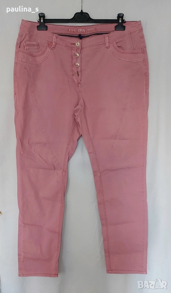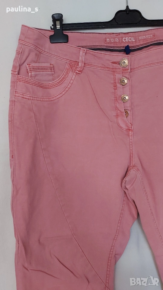 1️⃣. 2XL / 3XL - "Cecil". Цената е крайна, без пазарлъци 25 евро. Дамски еластични дънки в екзотичен цвят - Праскова, една бройка. Моделът е с външни копчета като клин. Купувани са от магазина на марката в Турция, не са носени. цената.